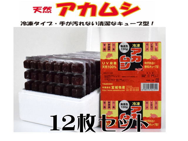 - 冷凍餌 富城物産 天然アカムシ 100gx12枚セット 赤虫 冷凍エサ(1枚200円)クール便60