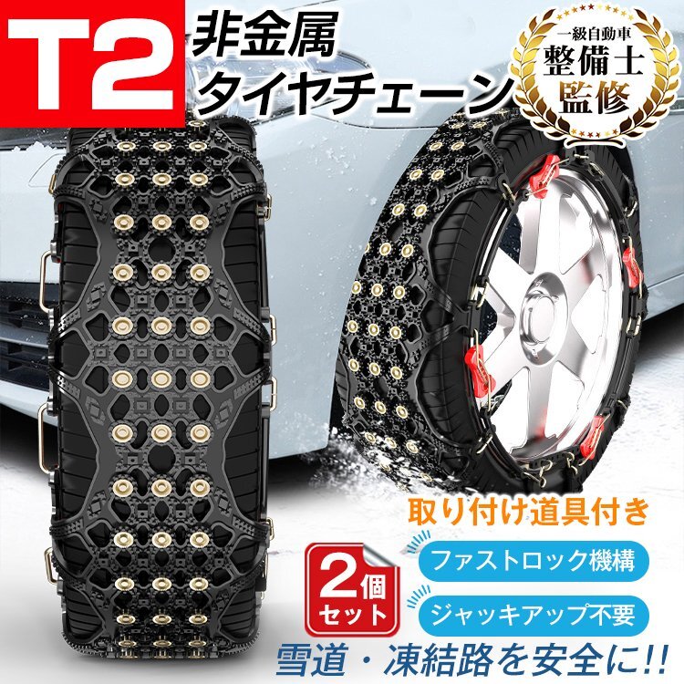 > タイヤチェーン スノーチェーン 非金属 車 FAST ロック 雪道 プラスチック アイスバーン 凍結 スリップ ジャッキ不要 スパイクピン e107-t2