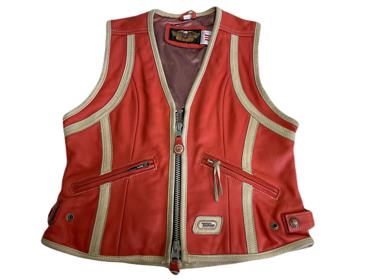 ハーレーダビッドソン  レザーベスト Mサイズ オレンジ  HARLEY DAVIDSON