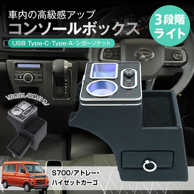 - 送料無料 コンソールボックス特価セール アトレー S700 ハイゼットカーゴ S710 ダイハツ センターコンソール LED ドリンクホルダー ee429