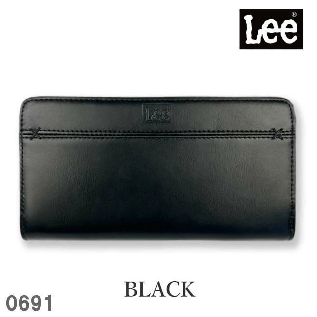 - ブラック Lee リー クロスステッチ ラウンド 長財布 リアルレザー0691