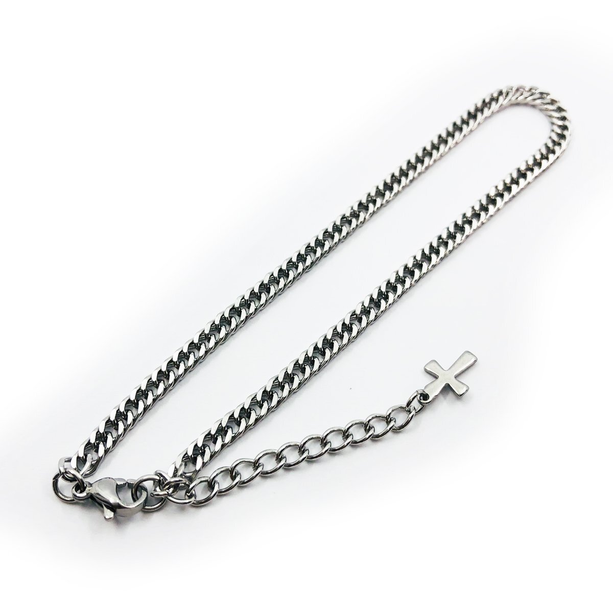 - ステンレスチェーンアンクレット 4.3mm幅 ダブル喜平4面カット 28cm(24cm+4cmアジャスター)