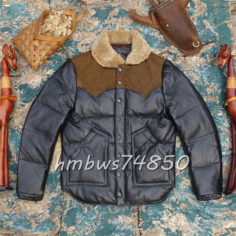 - 美品 メンズ 革ジャン ダウンジャケット 最上級 牛革 レザージャケット ダウン ウール襟 本革 超防寒 ブルゾン S-XLサイズ