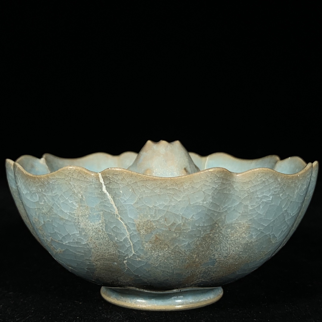 - 『館蔵珍品 宋 古陶瓷品 汝窯 冰裂紋 花口盞燈 陶藝』稀少珍蔵品 古賞物 貴重物品 収蔵品 中国古美術 時代物 古董品