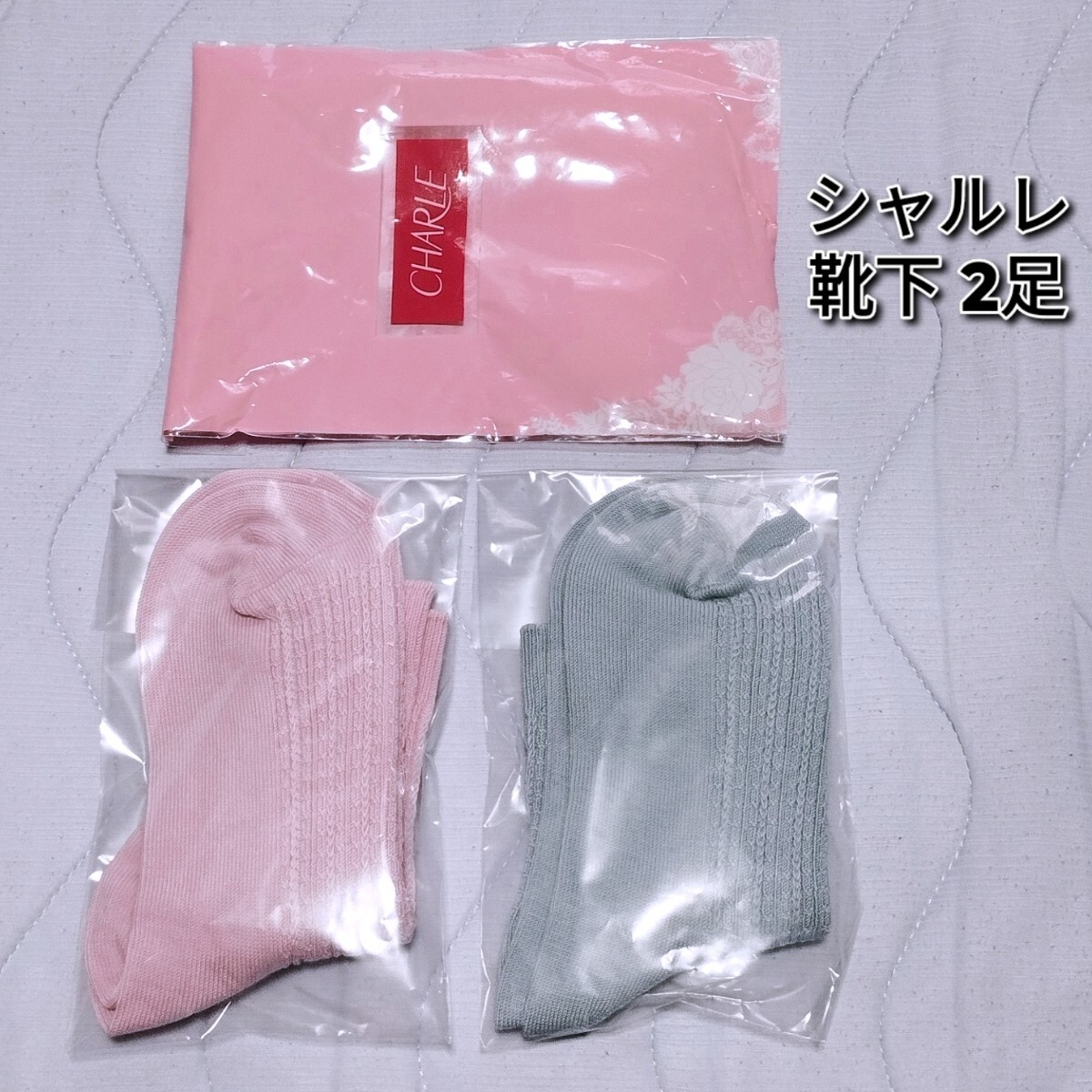 - 新品 シャルレ CHARLE 靴下 ピンク グレー 2足セット ショートソックス ピンク グレー ソックス