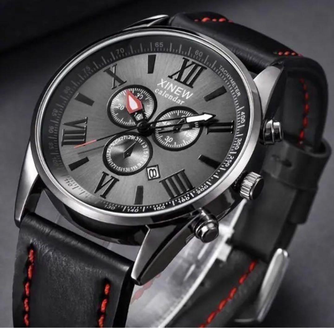 - お洒落! クロノグラフ腕時計 PUレザー メンズウォッチ