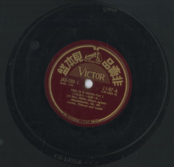 K00032179/12インチSP/アルフレッド・コルトー/ジャック・ティボー/パブロ・カザルス「Mendelssohn / Trio In D Minor Part 1、2」