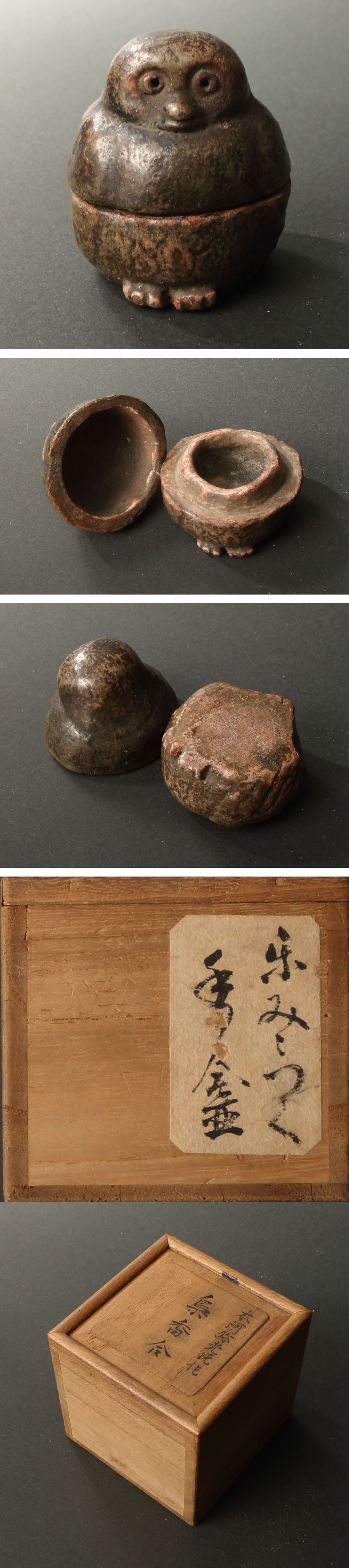 > 委託HK◇伝本阿弥光悦 赤楽梟香合(茶道具 陶磁器 陶芸 京焼 楽焼 みみずく 木菟 夜咄 茶事 炉 秋 冬 炭点前 不苦労 福来郎 縁起物 飾り)
