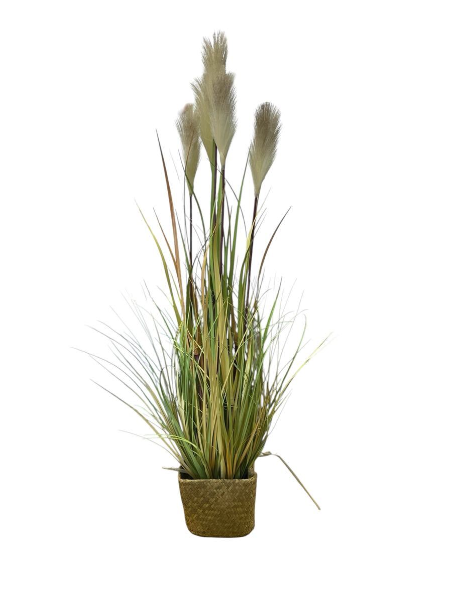 - 【中古】人口観葉植物 秋のススキ 花かご付き 寸法 高さ120cm クラウン幅50cm 長期保管品◆L102-017