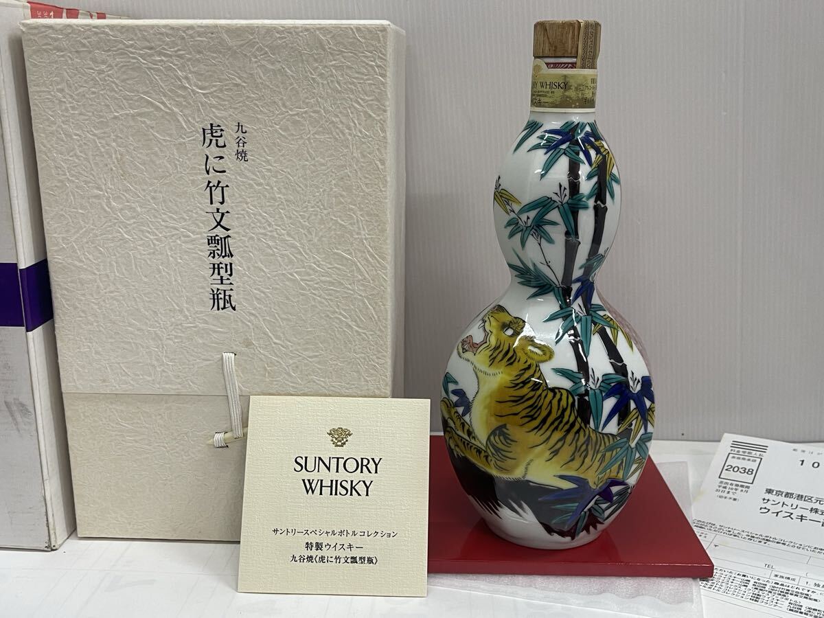 > 【古酒】未開栓 SUNTORYサントリー 20年 特製ウイスキー 九谷焼 虎に竹文瓢型瓶 27