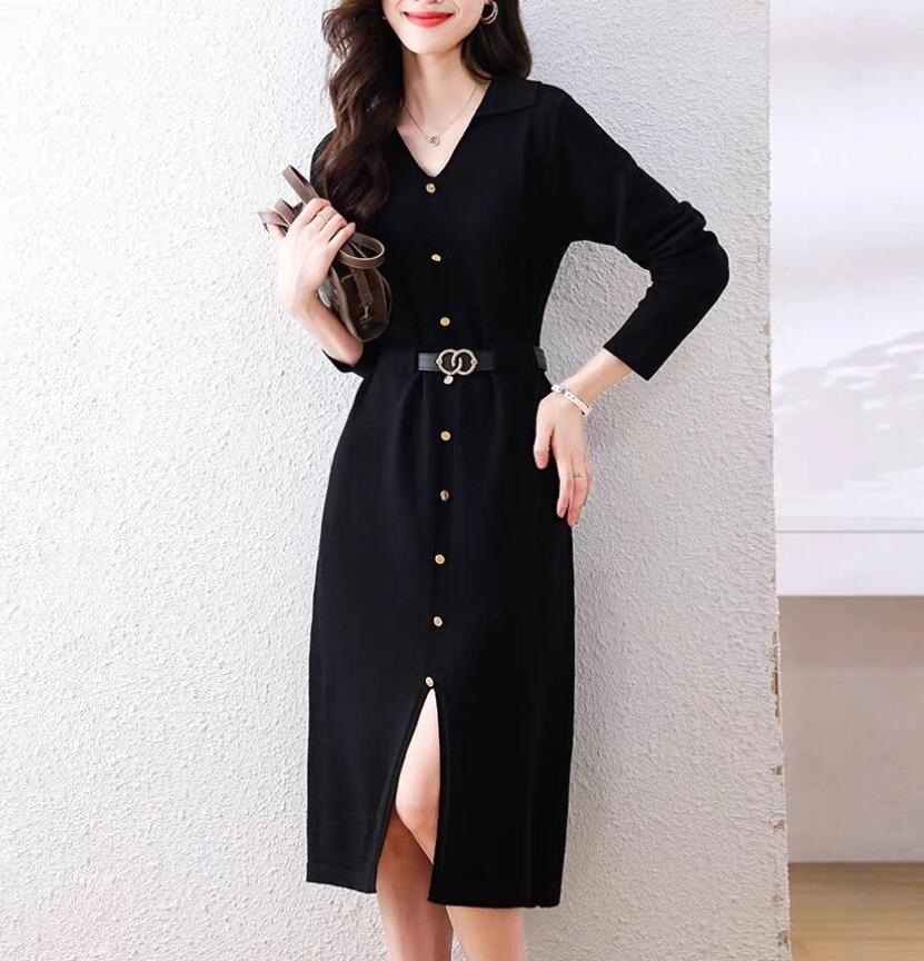 - 秋冬新品*ロングワンピース 気質 お呼ばれ オフィス ニットワンピース セーター ワンピース マキシ丈 ニットロングワンピース*ブラック