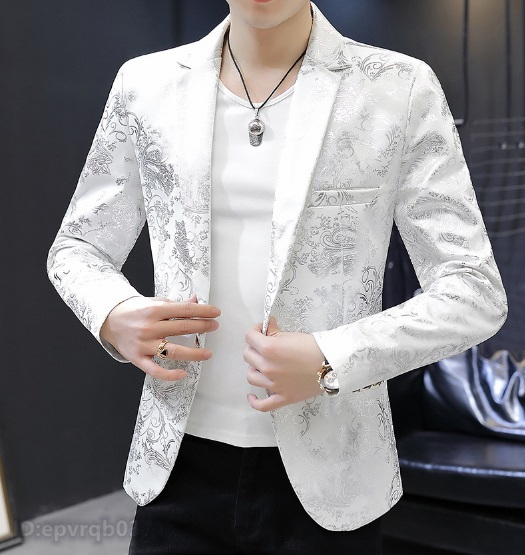 - ブレザー 新品 テーラードジャケット 花柄 折り襟 スリム メンズ トップス 紳士 カジュアルスーツ お洒落 サイズ選択可 2色選ぶ/白/L