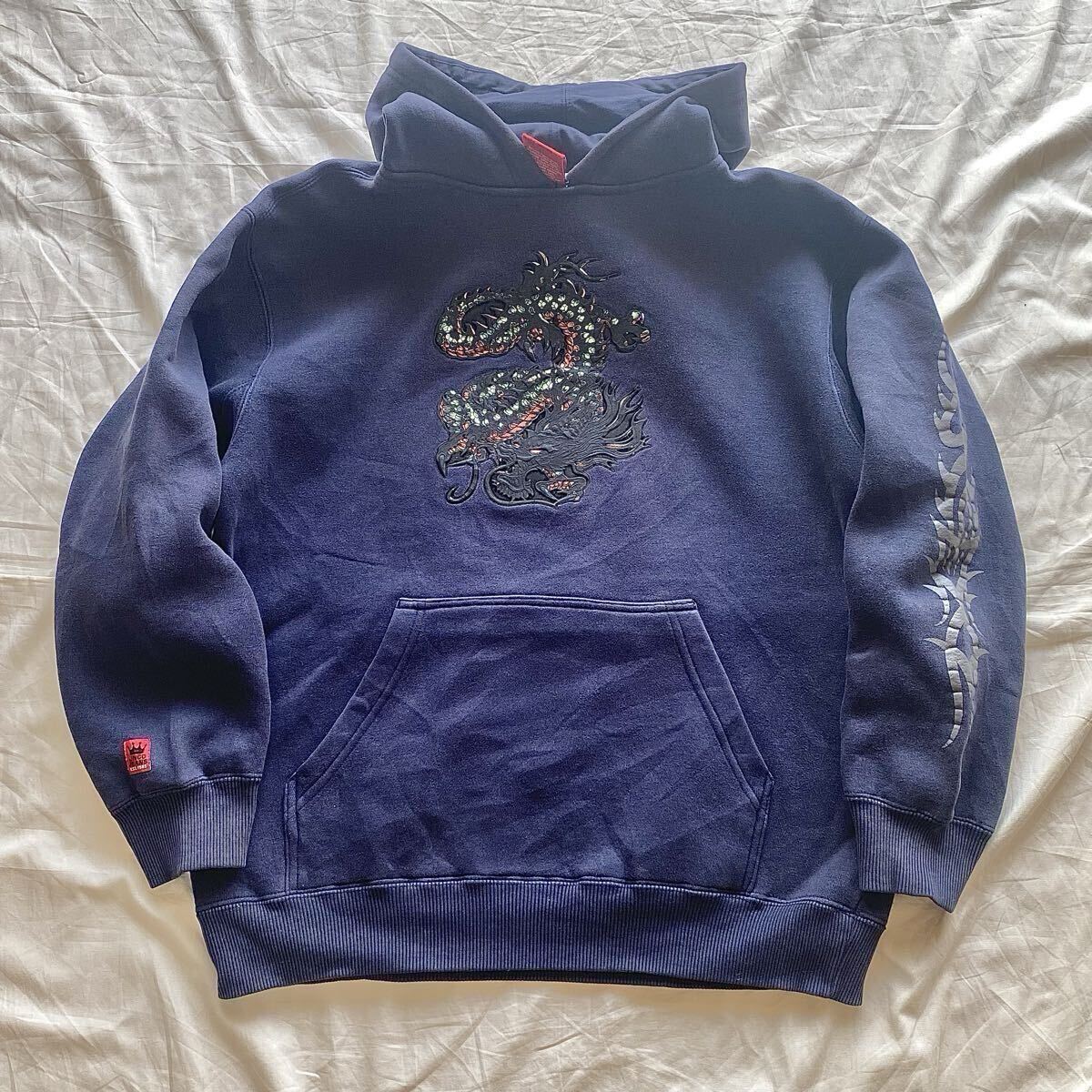 > 90s JNCO JEANS Dragon Parker ジンコジーンズ ドラゴン 龍 立体プリント トライバル ネイビー パーカー フーディ レア 25101002