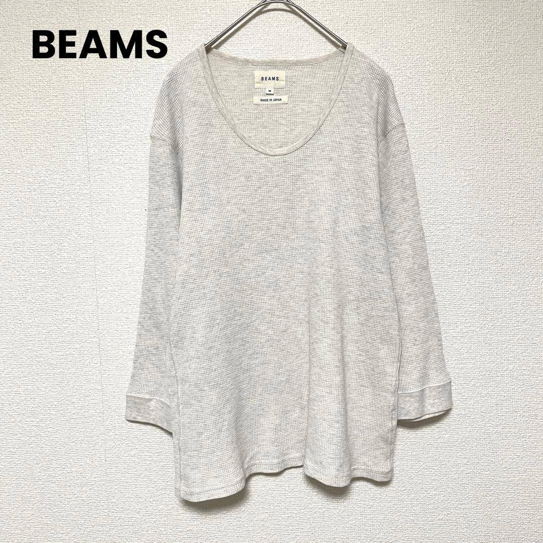 - qq267 ビームス/7分袖ワッフルTシャツ/カットソー/シンプル/トップス
