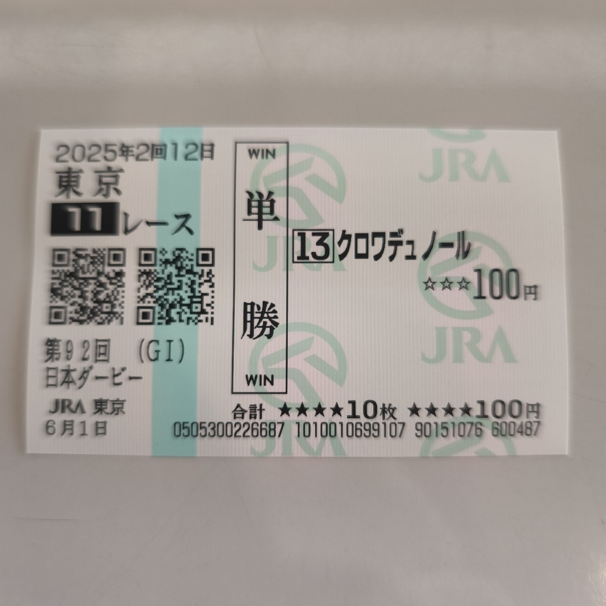 - 第92回東京優駿日本ダービー 優勝クロワデュノール 現地的中単勝馬券