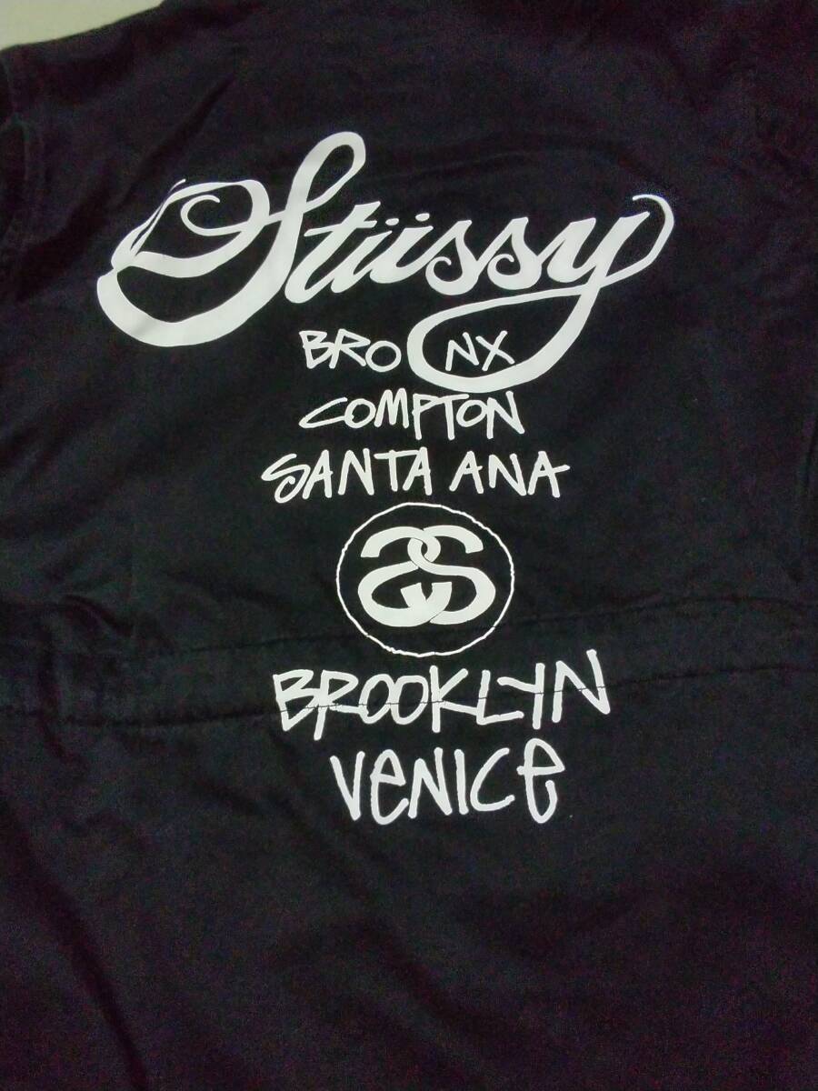 - ステューシー STUSSY スリッカージャケット Cotton Slicker Jaket. BLK ブラック MEDIUM ワールドツアーロゴ コットン パーカー 古着 USED