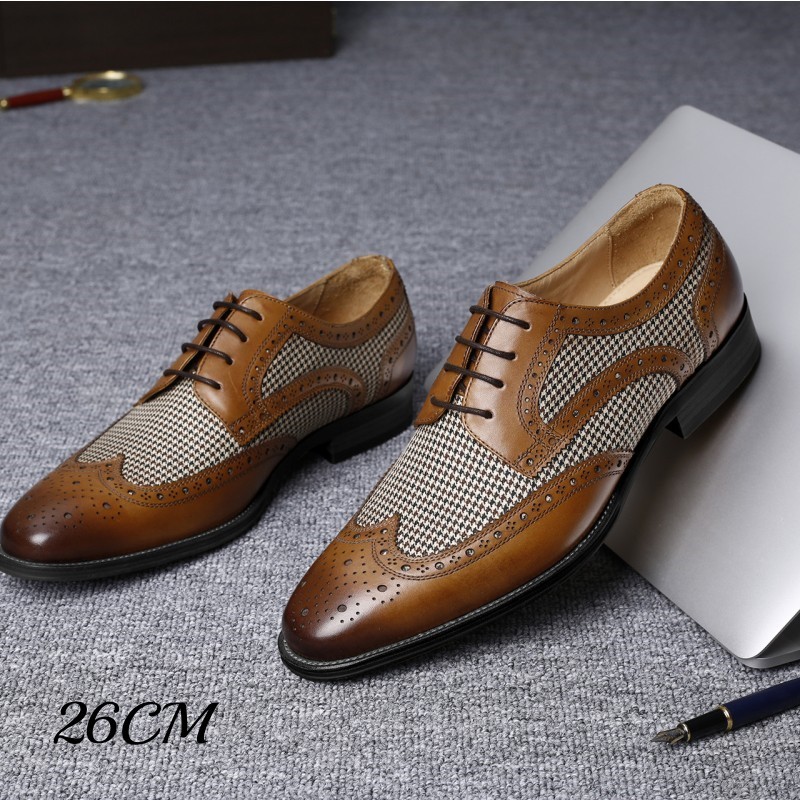 > ☆ビジネスシューズ メンズシューズ シューズ イギリス風 靴 千鳥柄 フォーマル 紳士靴 おしゃれ イギリス風 イエロー 26cm