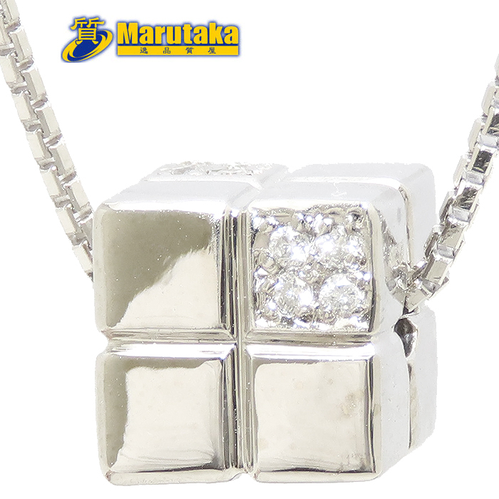 > キューブ ダイヤモンド ネックレス 40cm K18 WG 0.12ct 逸品質屋 丸高 尼崎市 ホワイトゴールド Au 750 18K White Gold