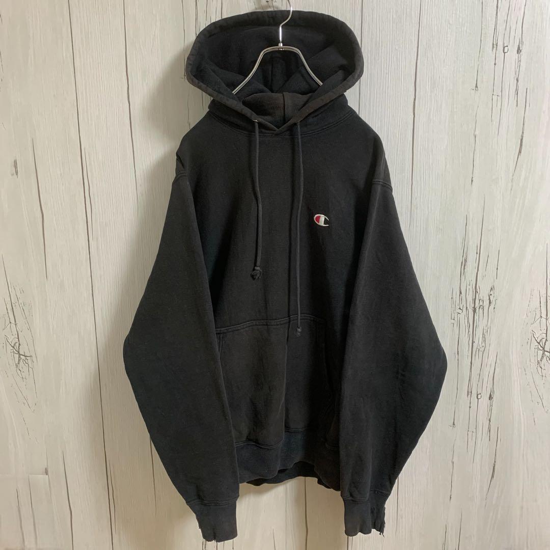 - Champion チャンピオン リバースウィーブ プルオーバーパーカー スウェット トレーナー刺繍 黒 ブラック