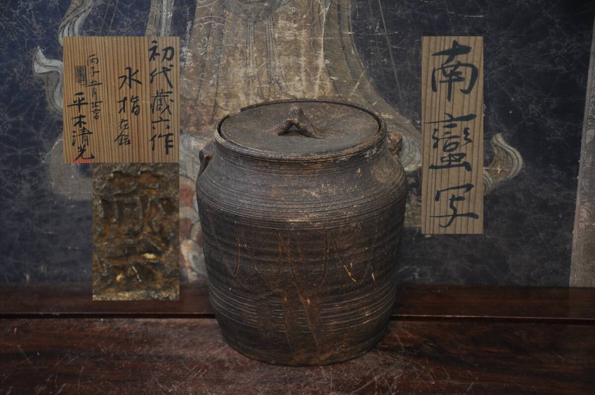 - 初代 蔵六造 南蛮水指建水 共箱煎茶道具
