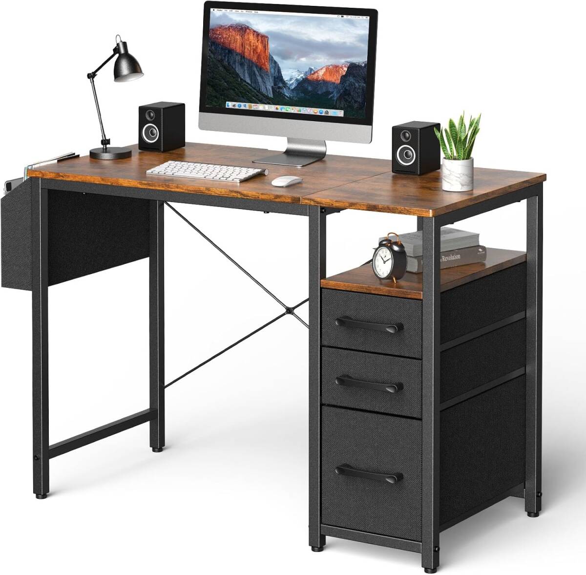 > ブラウン色 幅100cm DOMICON ゲーミングデスク 引き出し パソコンデスク ゲームデスク PC desk 作業机 ワークデスク オフィス