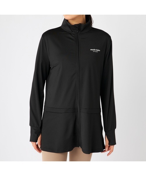> 【Mサイズ】新品 マリクレールスポーツ marie claire SPORT 接触冷感 ロング丈UVカットジャケット ラッシュガード 415702 黒 アウトドア