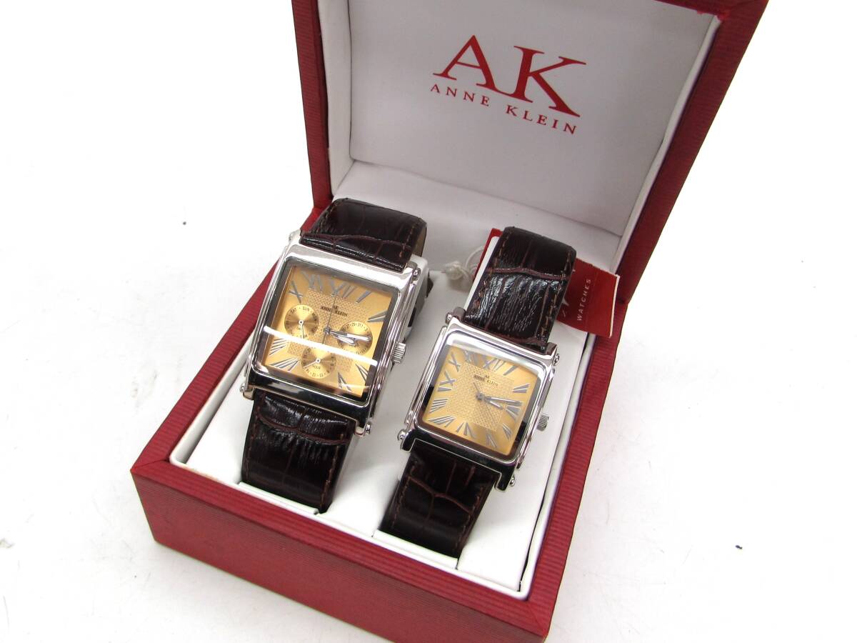 > 未使用品 動作品 アンクライン ANNE KLEIN ペアウォッチ 10/7313L 10/7313S デイデイト クォーツ ベルト経年劣化