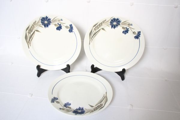 - フランス アンティーク 古い陶器のプレート 青いカーネーションの絵 まとめて3枚セット! 美品
