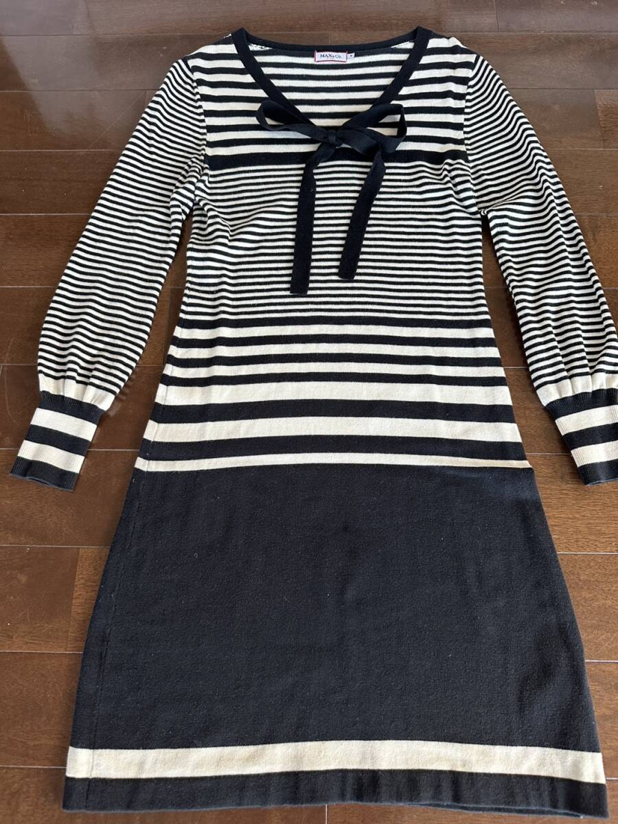 - MAX & CO 白黒ストライプ リボンワンピース 大人可愛い シルクコットン