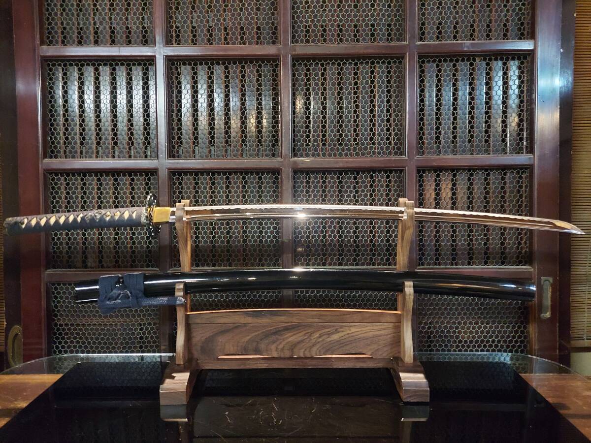 > K01-1011 刀剣 日本刀 居合刀 打刀 模造刀 黒鞘 倣古刀装具 上手造り 美品