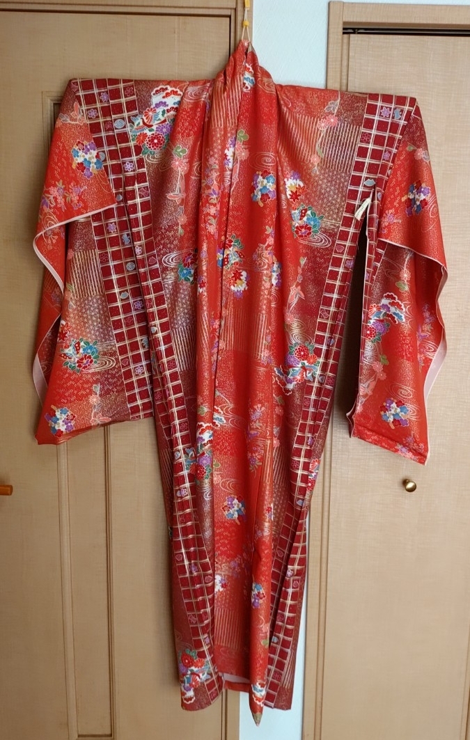 - 十三参り仮仕立て着物(赤系/紗綾型や桜等柄)・在庫処分