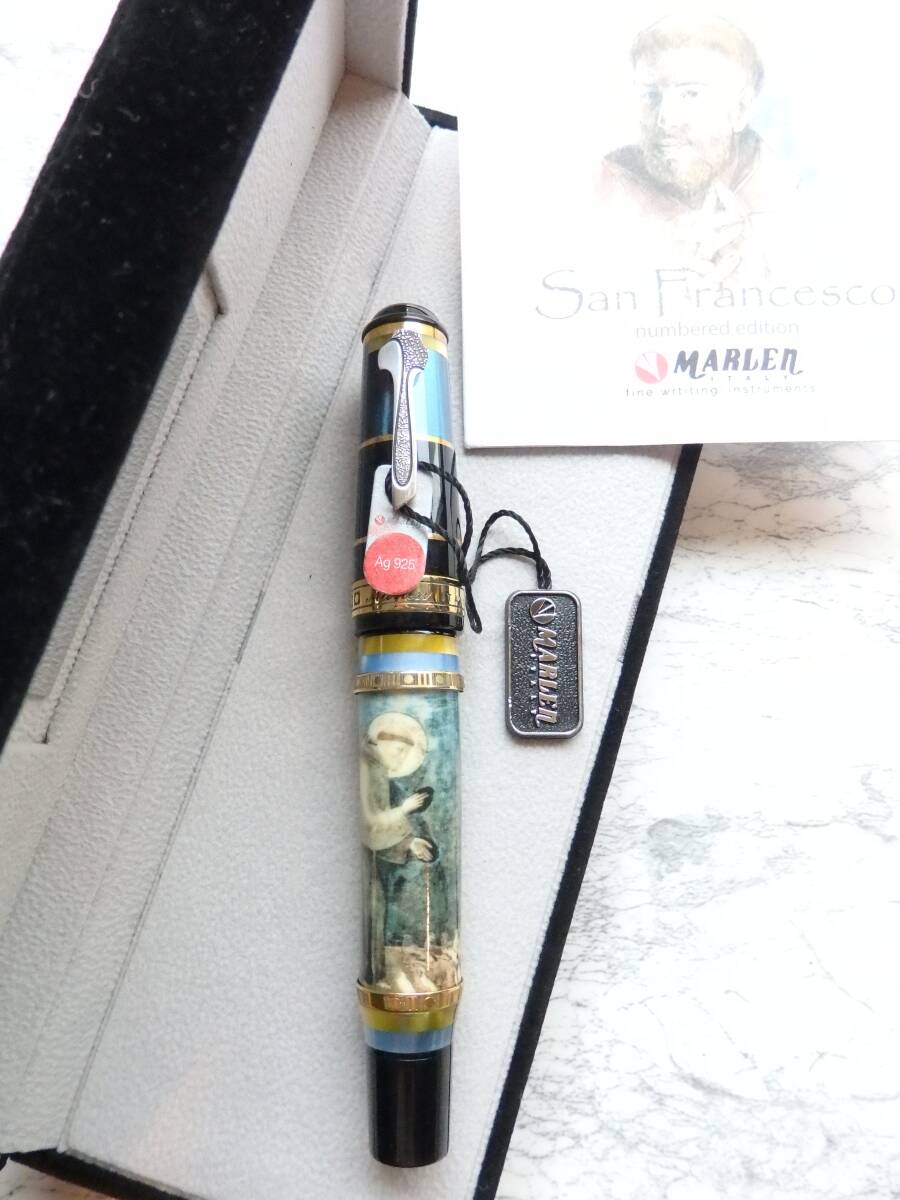 > ◆【新品・未使用】マーレン万年筆 聖フランシスコ レジン・磁器 ペン先:18K750ソリッドゴールドM