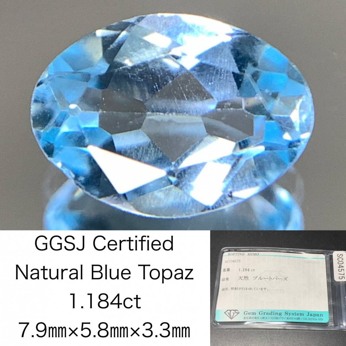 > ブルートパーズ 天然 1.184ct 宝石ソーティング付き 7.9×5.8×3.3 ルース( 裸石 ) 6982Y