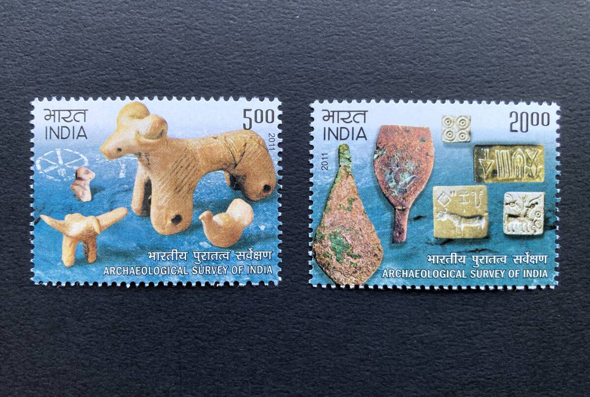 - 外国切手: インド切手 「インド考古調査局開設150年」 2種完 未使用