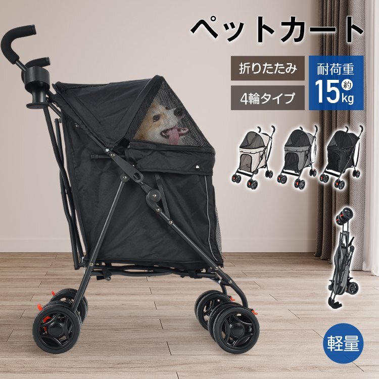 - 送料無料 ペット用カート 折りたたみ式 取り外し可能 犬 カート 犬用カート ペット 犬用バギー カップホルダー リード 散歩 前開き pt087