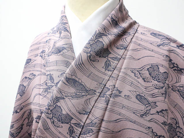 - 《京都一輝堂》【着物】小紋 蝶に花文 しつけ付 身丈約159cm 裄丈約63cm 24z-4306