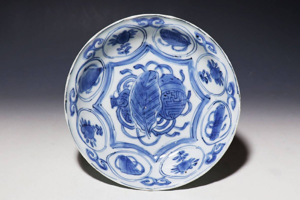 - 【桃】古染付:明末清初期染付瓢に木の葉図皿