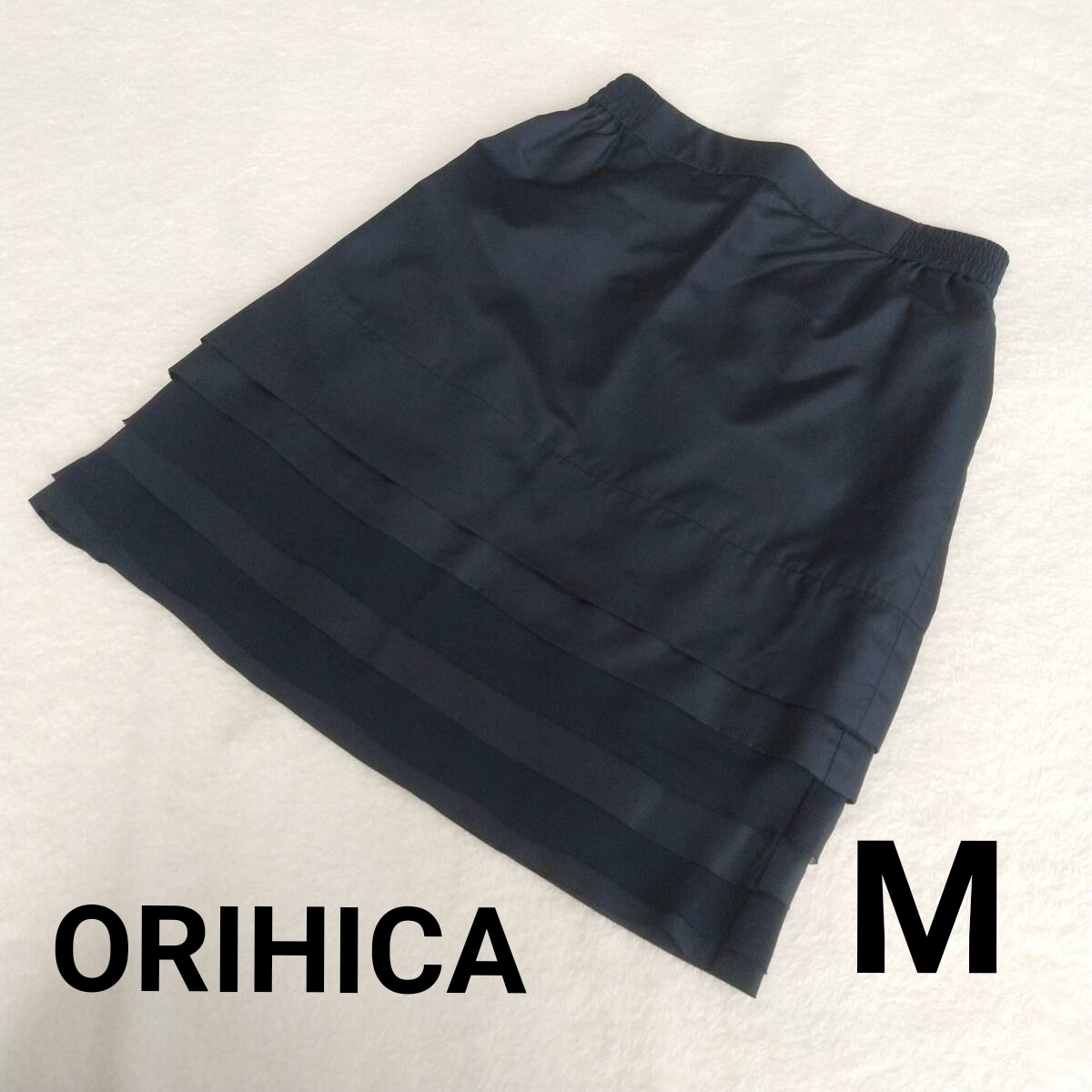 - ORIHICA オリヒカ ネイビー スカート 9号 ウエストゴム タックデザイン Mサイズ相当