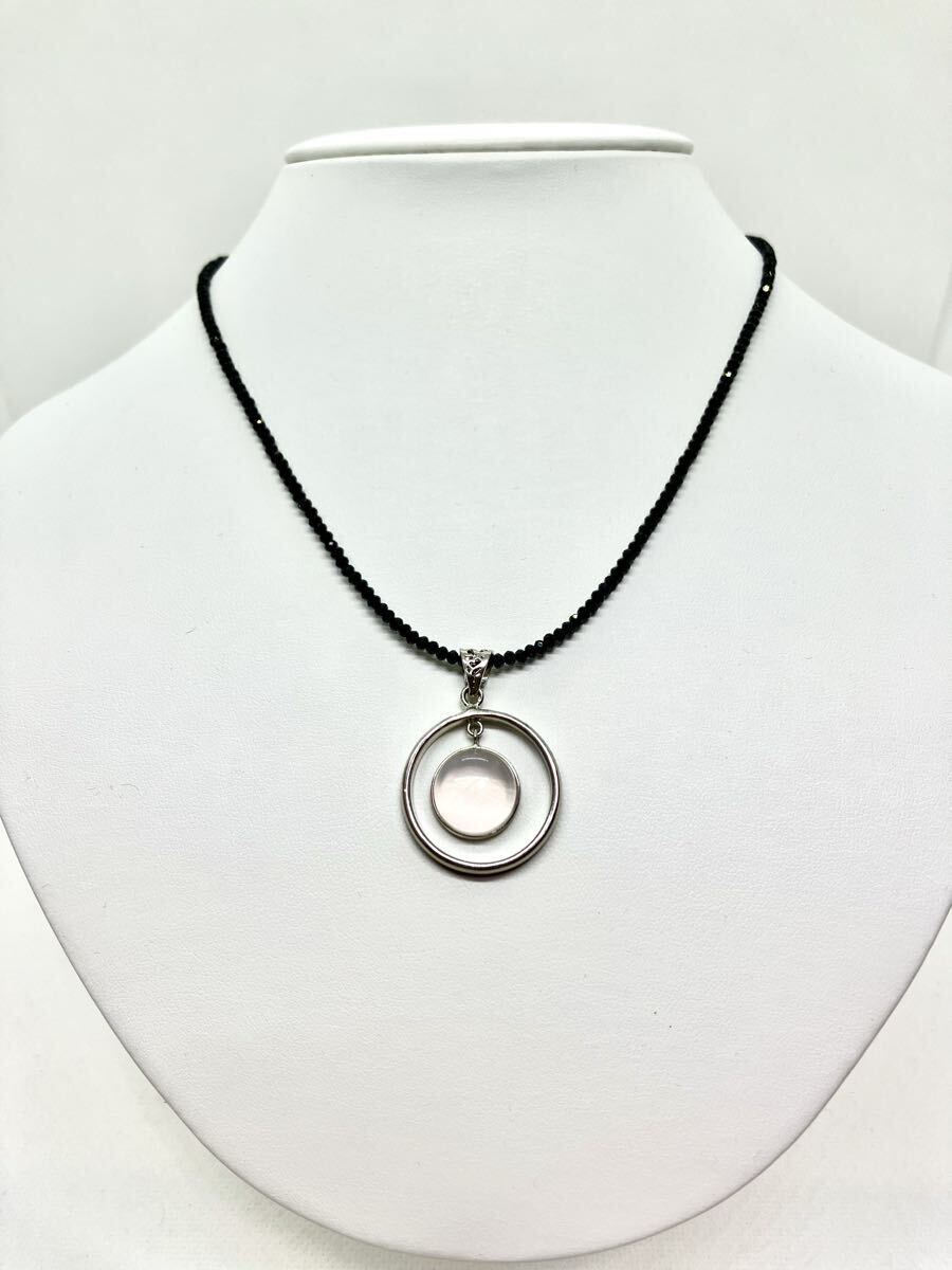> 【新品】ローズクォーツネックレス/天然ネックレス/デザインネックレス/揺れるデザイン/シンプル/ブラックスピネル/ピンク/水晶