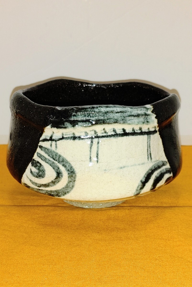 - 骨董品 茶道具 黒織部茶碗 陶印有り 黒織部抹茶茶碗 美濃焼き