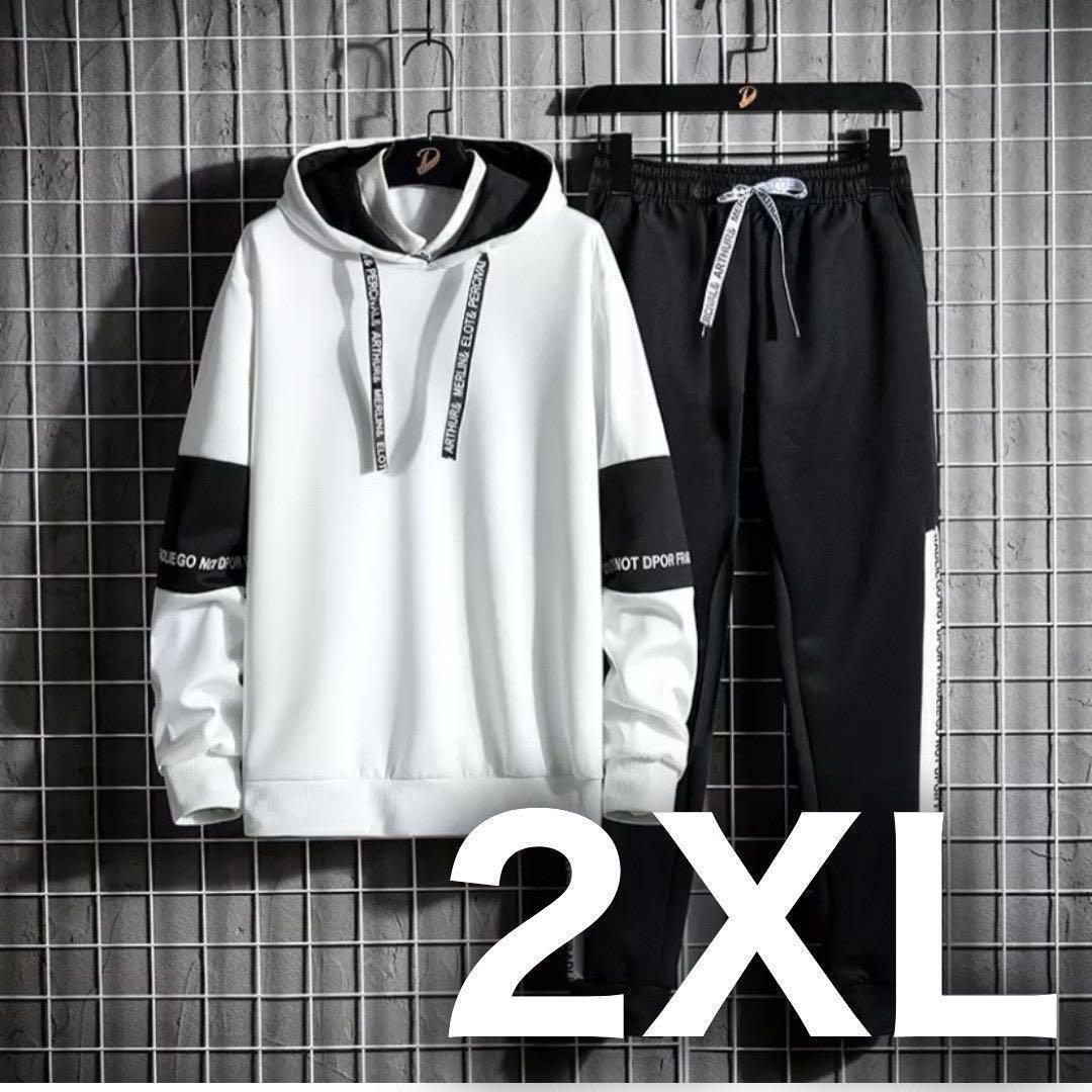 - スウェット ルームウェア パーカー メンズ ジャージ 上下 白 ホワイト 2XL