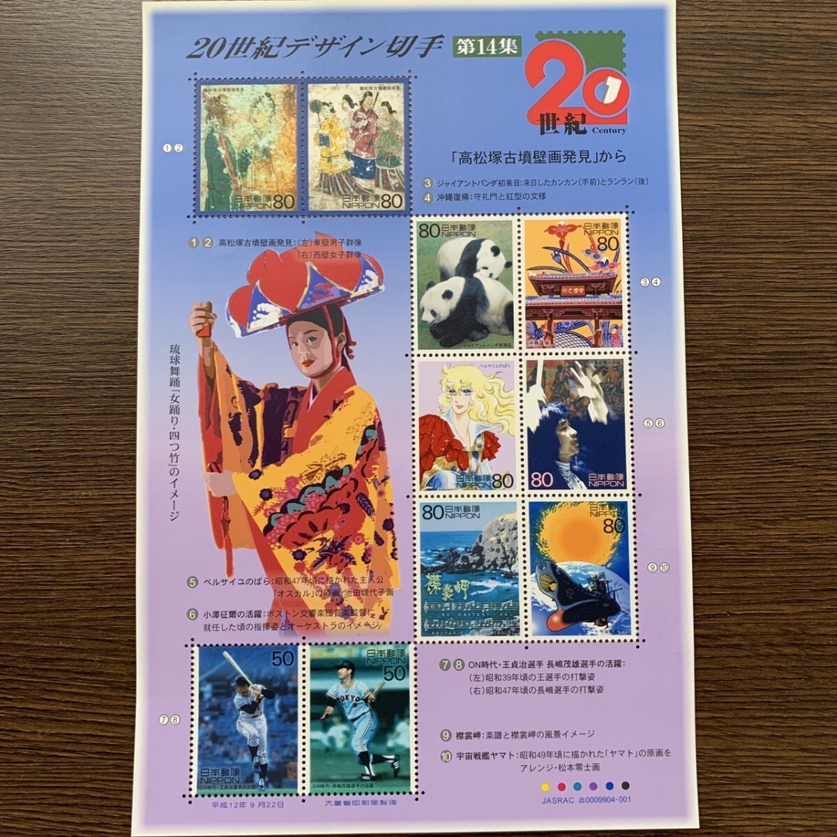 - 20世紀デザイン切手 第14集 高松塚古墳壁画発見 パンダ ベルサイユのばら 宇宙戦艦ヤマト