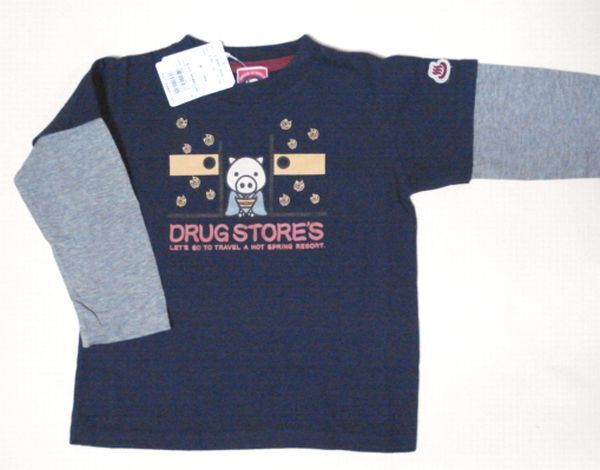 - Lastドラッグストアーズ130 綿100% 温泉さくらTシャツ 紺