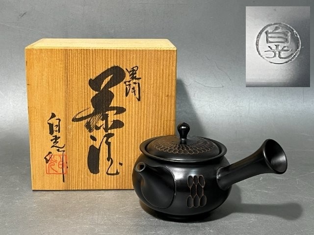 - 煎茶道具 白光 造 黒陶 茶注 黒泥急須 共箱