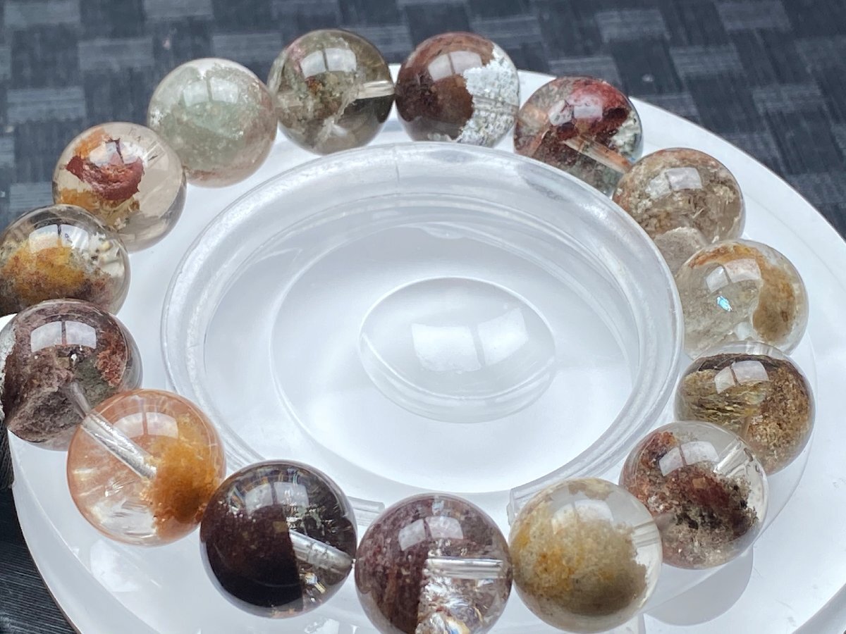 - 即決 0621a182 天然石【30A多彩なガーデンクォーツ】庭園水晶 ブレス 15-16mm(新品)