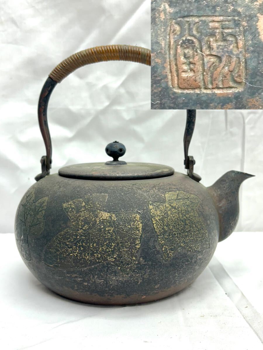 > 1円〜 玉川堂 鎚起銅製 葉紋彫 湯沸 急須 銅瓶 金工 薬缶 茶道具 煎茶道具 時代物 鉄瓶 銅製品 金属工芸品 伝統工芸品 作 造 置物 彫刻
