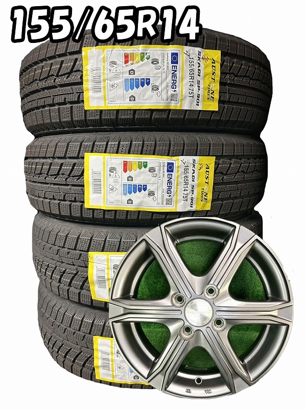 - 2024年製 155/65R14 75T Austone SP-901 新品スタッドレス/中古 アルミホイール 4本【組み付け無料バランス込み】