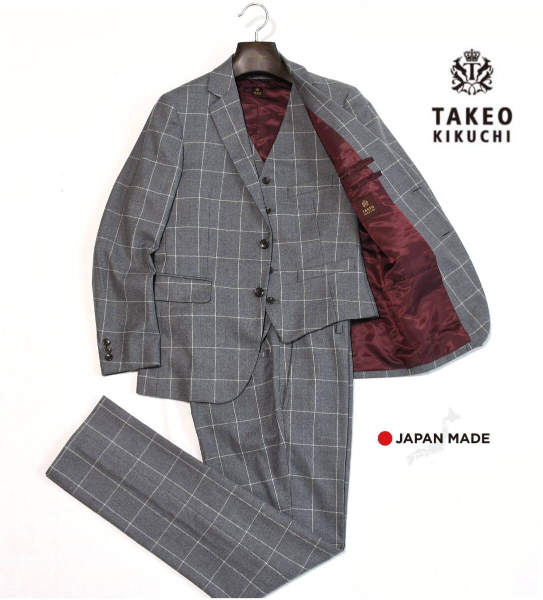 > MADE IN JAPAN TAKEOKIKUCHI(タケオキクチ) “メインライン” ウインドウペンチェック・3ピーススーツ ジャケット ベスト スラックス