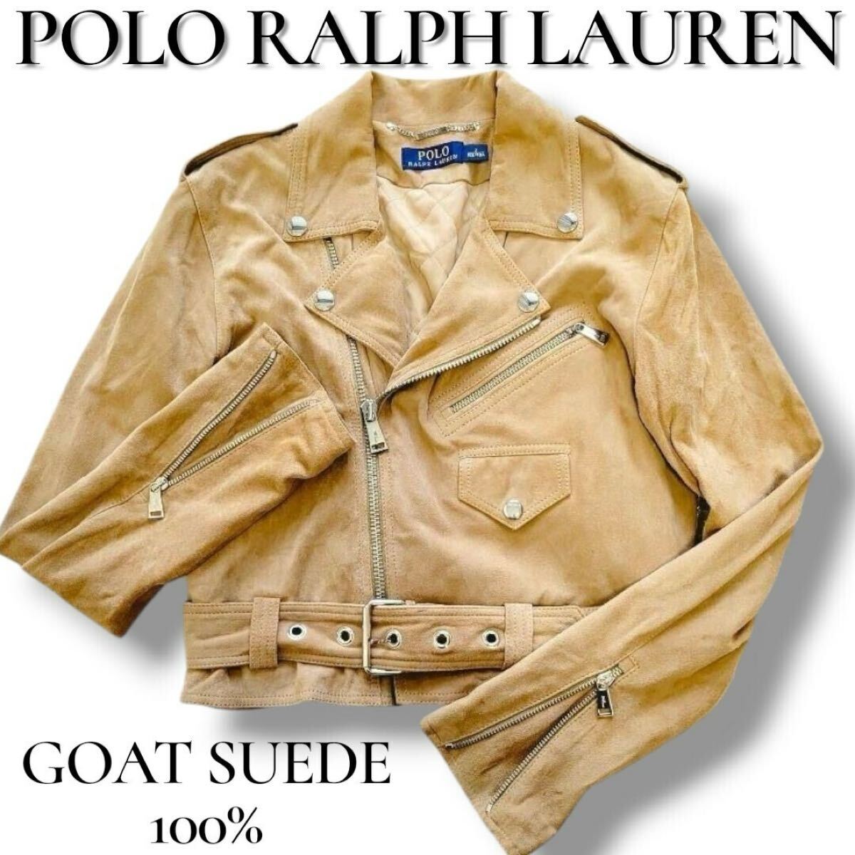 - 美品 現行品 ポロラルフローレン 山羊革 スエード ダブルライダースジャケット 2 MPOLO RALPH LAUREN スウェード ラムレザー
