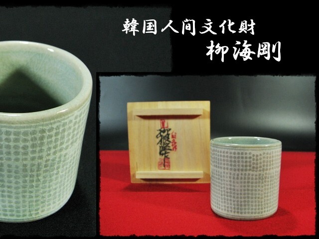 - ∴名工館∴【送込!韓国人間国宝 柳 海剛】人間文化財 根瀅 高麗青磁 象嵌 蓋置 茶道具 共箱 無傷 真作保障 送料無料 1 f178